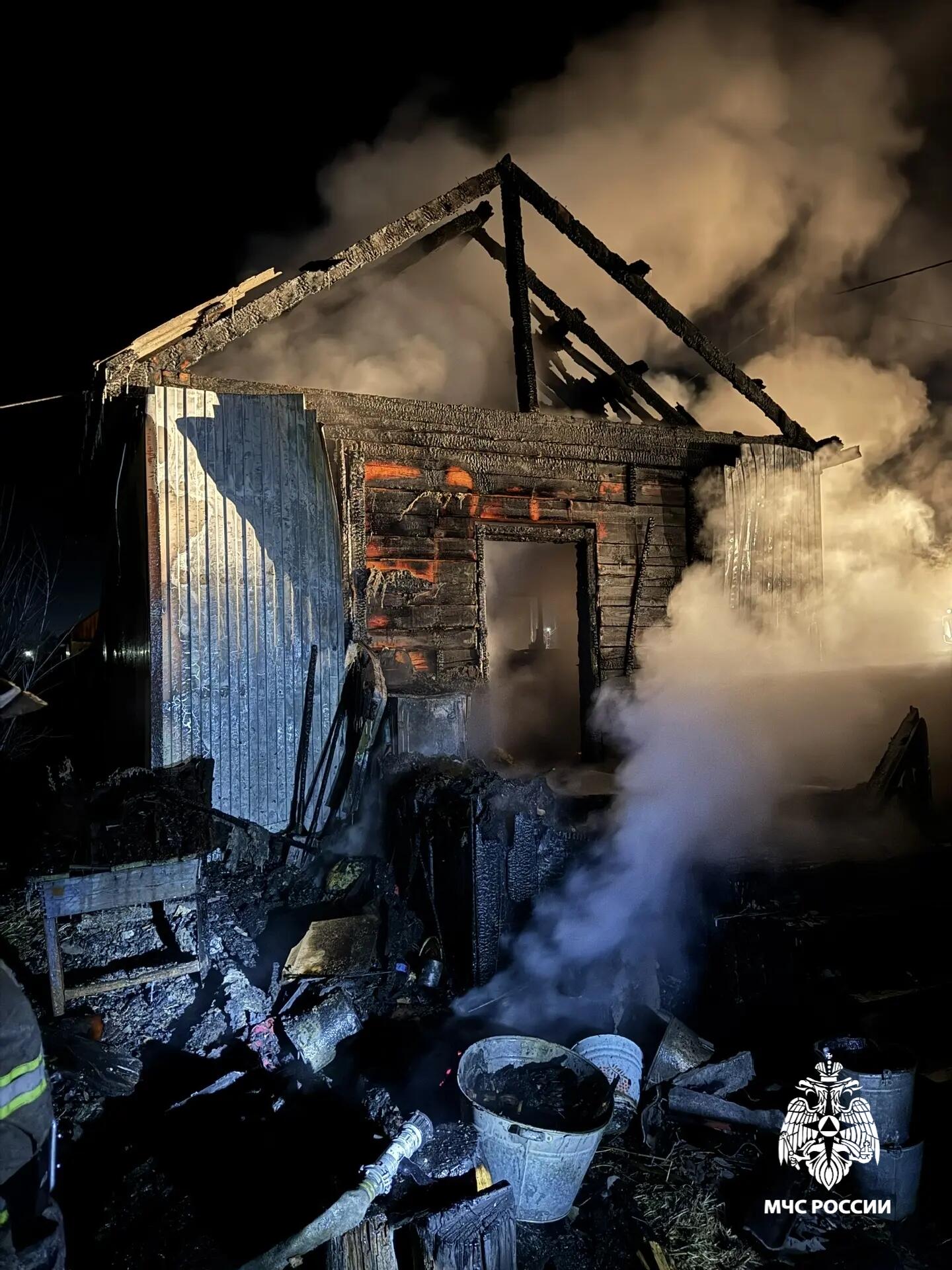 В ночь на 21 марта 2026 года в селе Багдарин (Бурятия) загорелся частный жилой дом. Огонь быстро охватил основное здание, кровлю и пристройку.